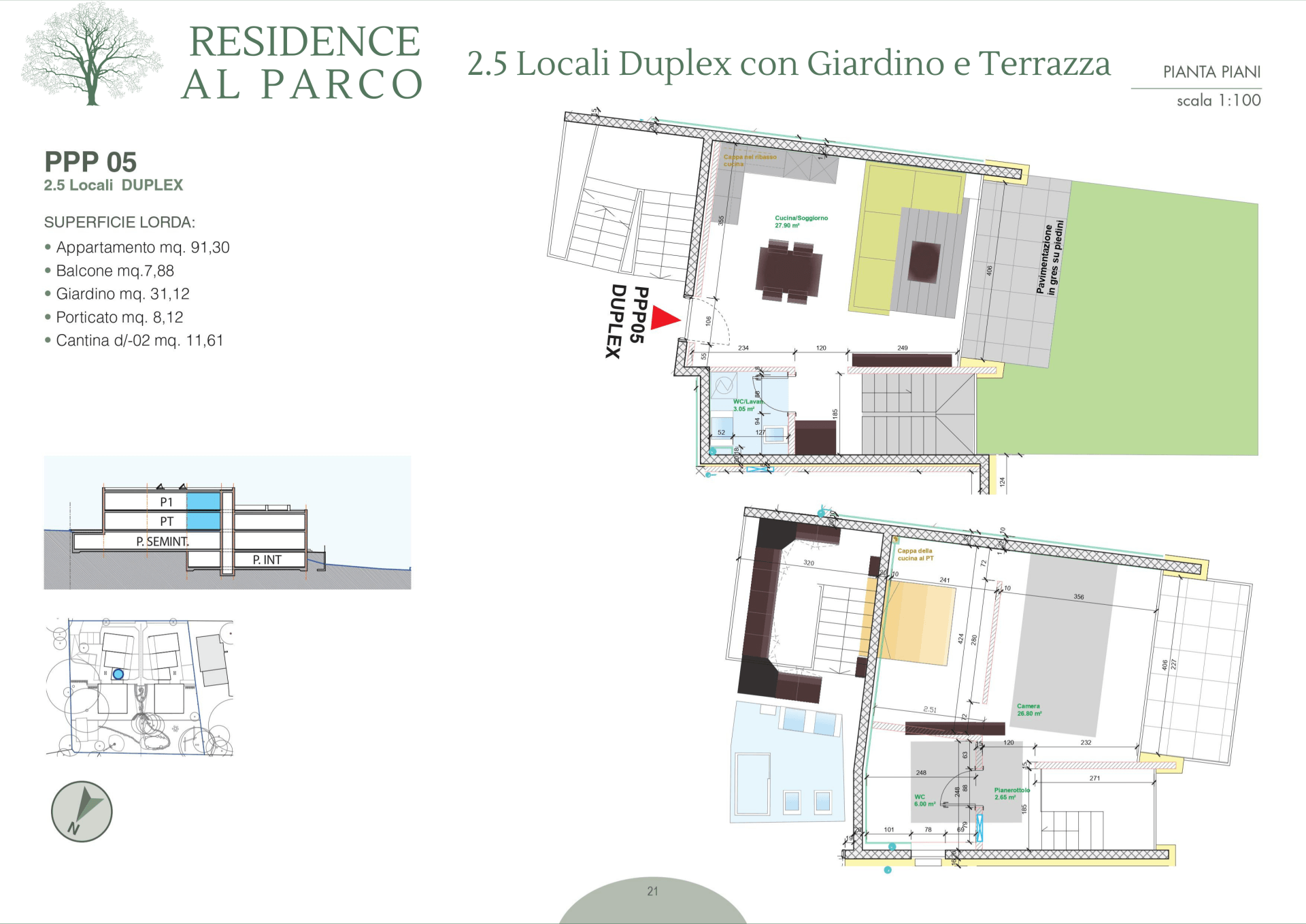 Proponiamo 2.5 Locali Duplex con Giardino o con Terrazza,