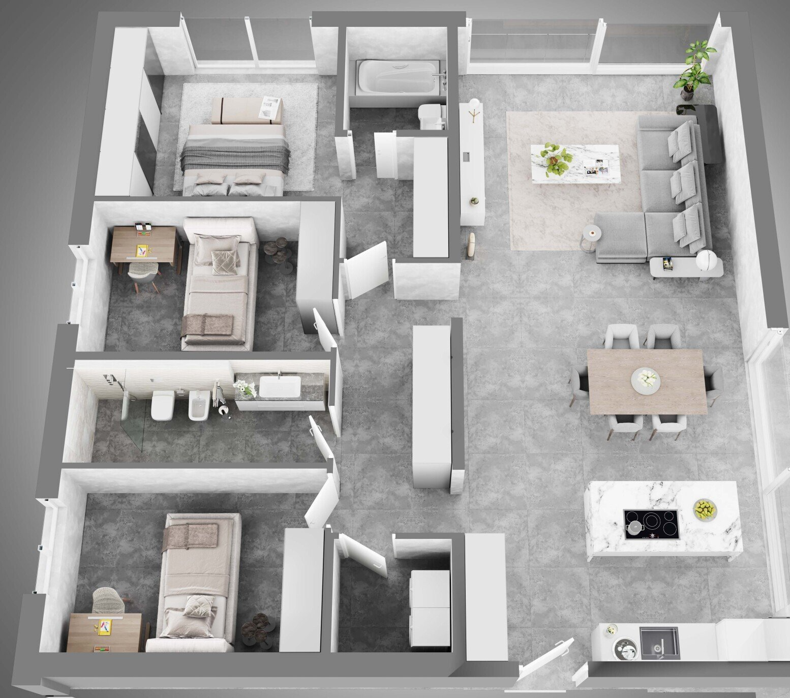 Le presenti immagini sono Rendering 3D ed elaborazioni grafiche che consentono di ottenere un'idea generica e di base, non vincolante, del progetto finito.