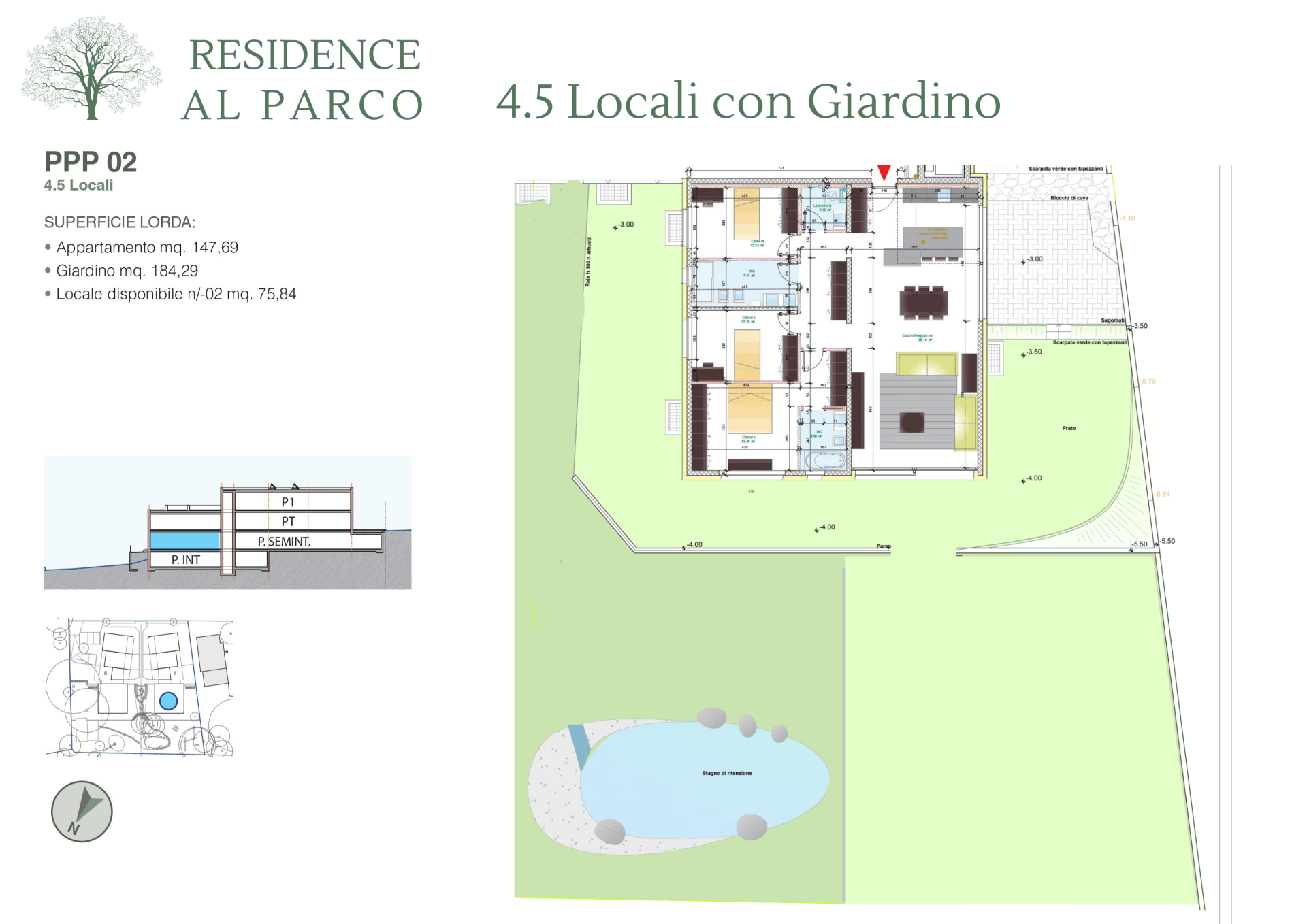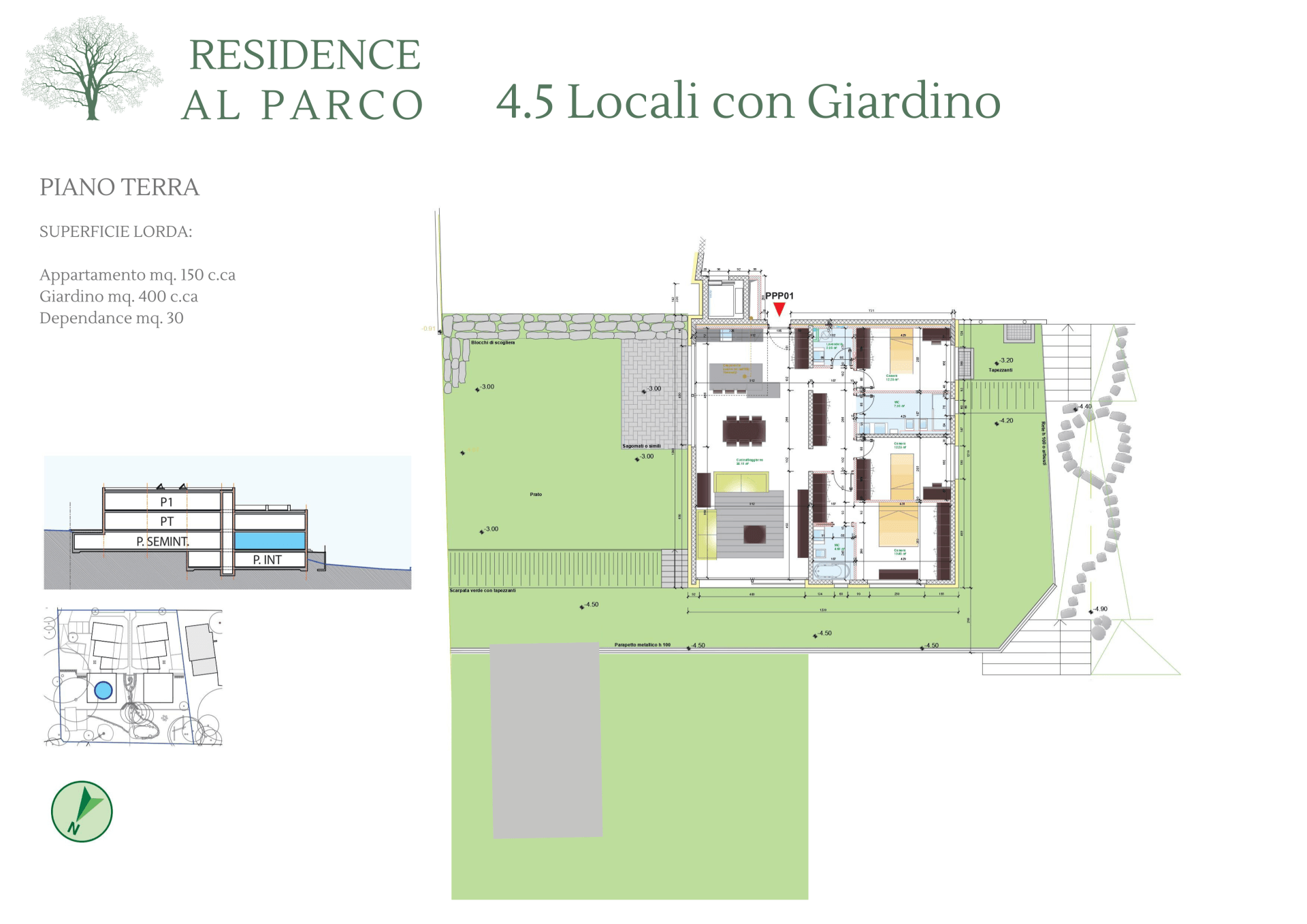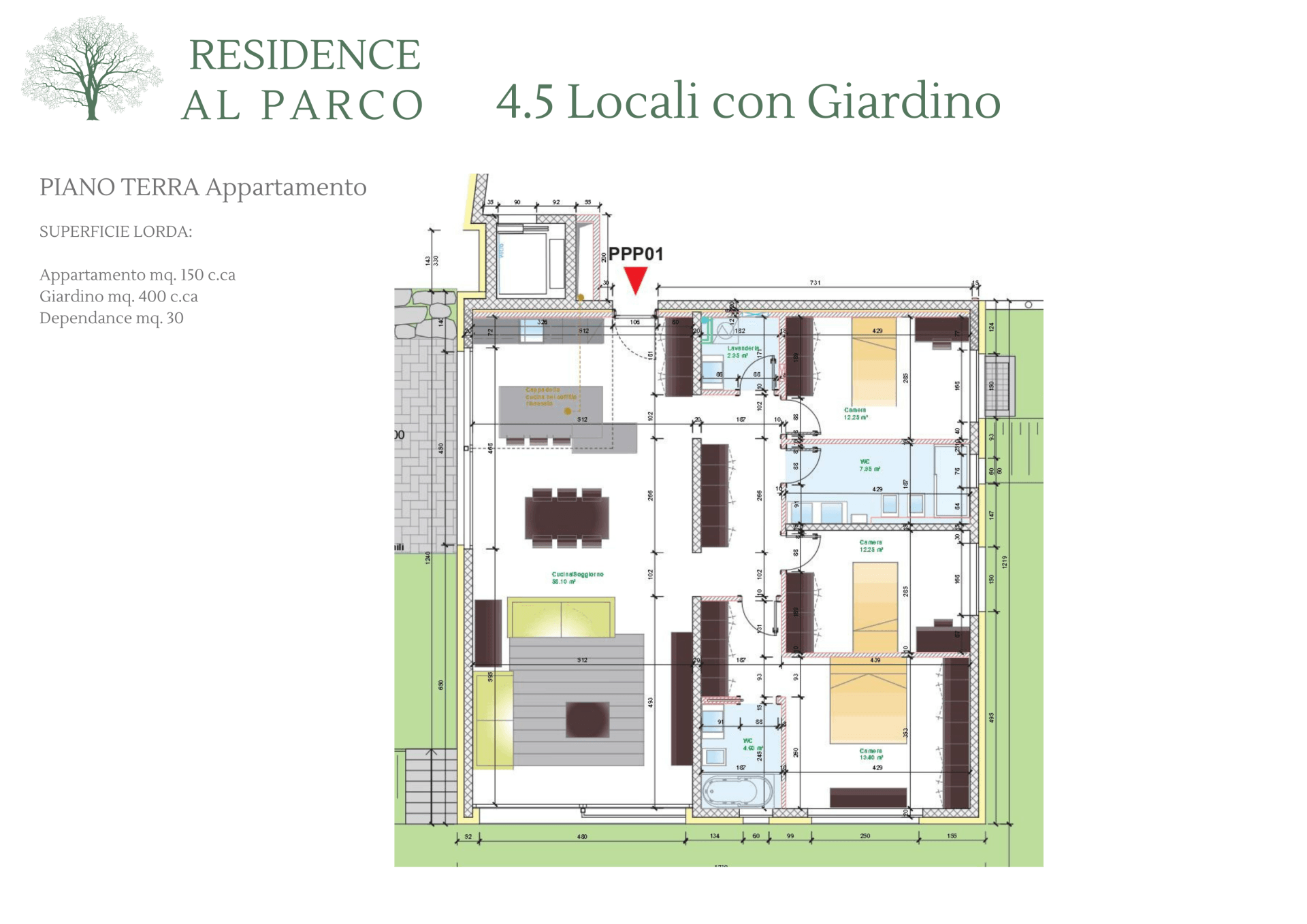 - Giardino mq 260 + possibilità opzionale di ampliamento attraverso l'annessione di altri 70 mq di giardino, con annessa casetta indipendente in muratura di mq 30 (opzionale).