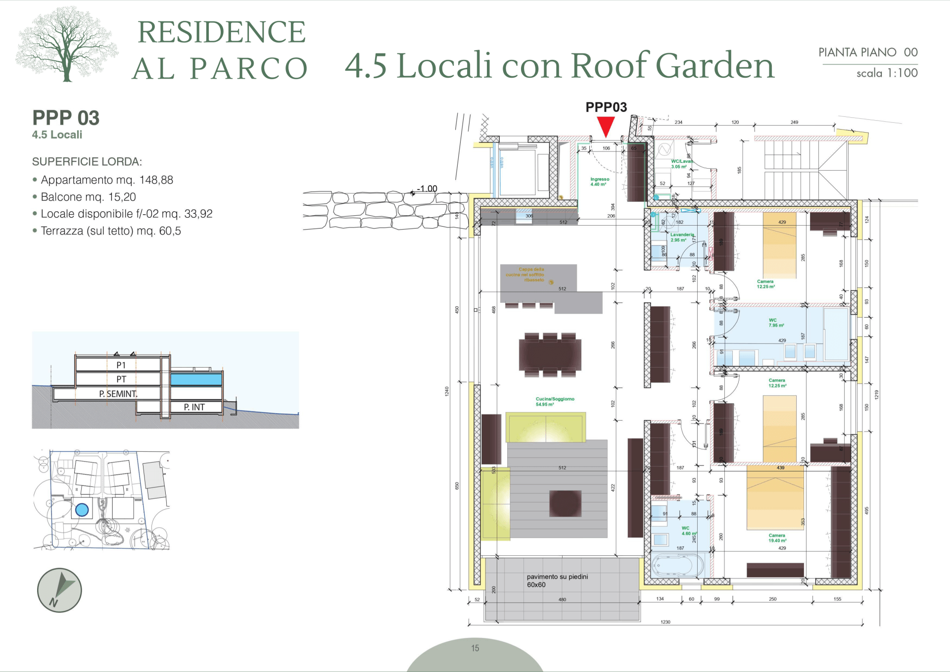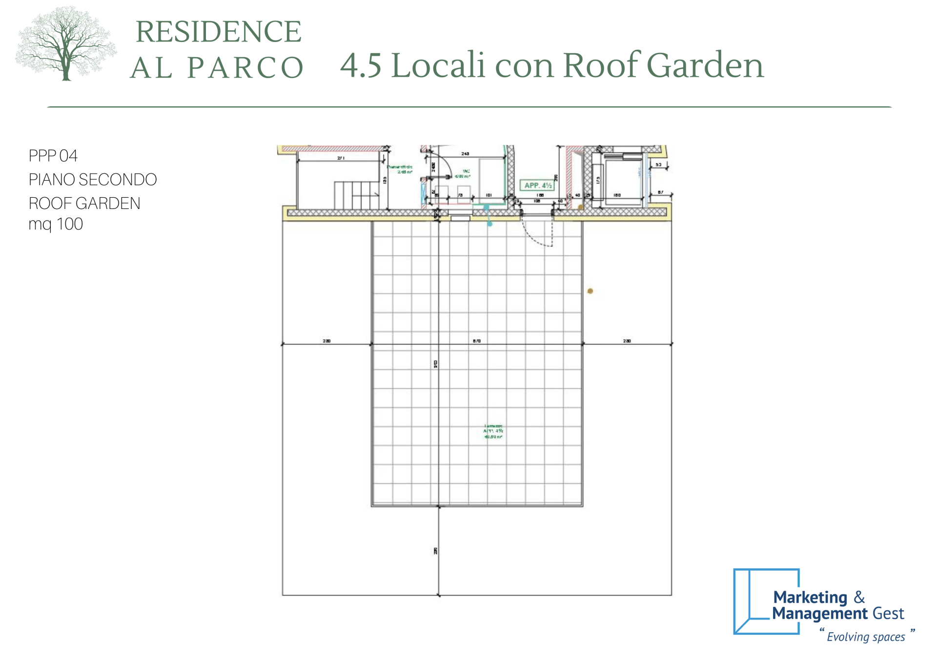 Roof-Garden: 149 (calpestabili 65 mq lordi)
